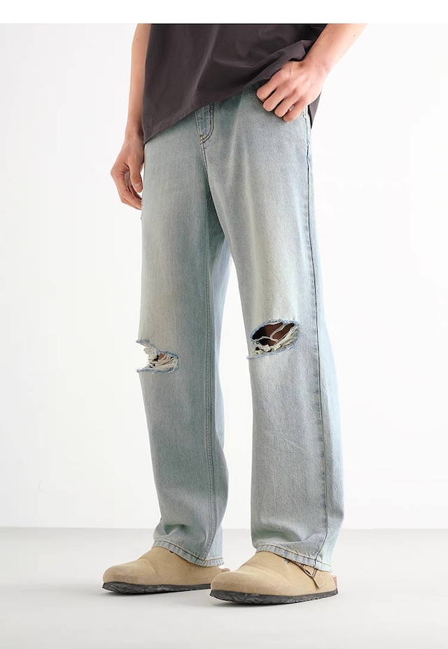 “ラフに穿いて、夏に映えるクラッシュデニム” 程よいダメージ加工がこなれた印象のクラッシュドジーンズ。 夏らしいライトブルーの色味が爽やかで、特に白Tとの相性は抜群です。 シルエットはストレートタイプで、無骨な男らしさもキープ。 カジュアルなのに抜けすぎない絶妙なバランスが、1本でこなれ感を演出。 サンダルやスニーカーと合わせて、肩の力を抜いた夏コーデを楽しんで。 【color】 Light indigo blue 素材:コットン 100% サイズ詳細(cm) ・30:ウエスト 78/レングス 101/ヒップ 97/裾周り 42 ・31:ウエスト 81/レングス 103/ヒップ 100/裾周り 43 ・32:ウエスト 84/レングス 105/ヒップ 103/裾周り 44 ・34:ウエスト 88/レングス 107/ヒップ 107/裾周り 45 ・35:ウエスト 92/レングス 109/ヒップ 111/裾周り 46 ・37:ウエスト 96/レングス 111/ヒップ 115/裾周り 47