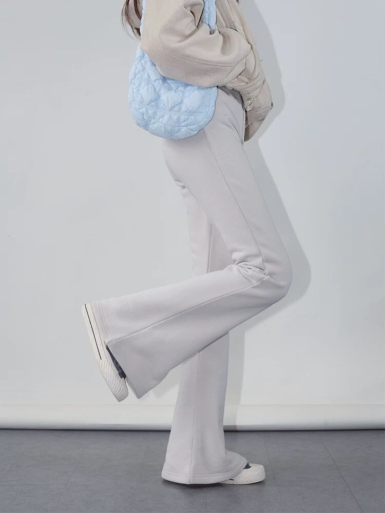 スウェット生地のリラックス感と、フレアシルエットの美しさを兼ね備えた一着。