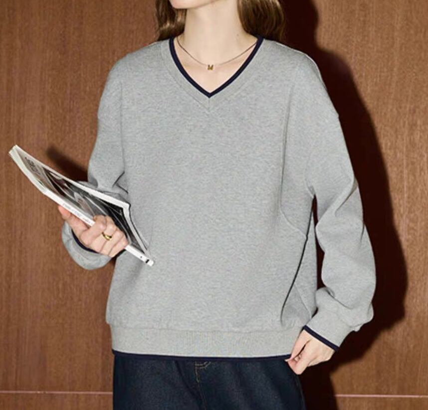 “シンプルなのに洗練された、ライン入りスウェットシャツ”