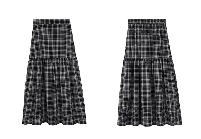 【women’s】Retro long check gathered flare skirt