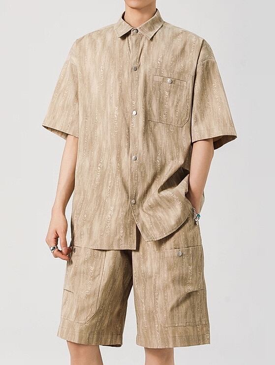 シャツには着脱がラクなスナップボタンを採用し、シンプルながら抜け感のある仕上がりに。