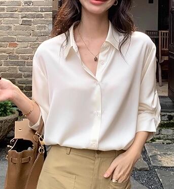 【women’s】Glossy Silk Button-Up Shirt