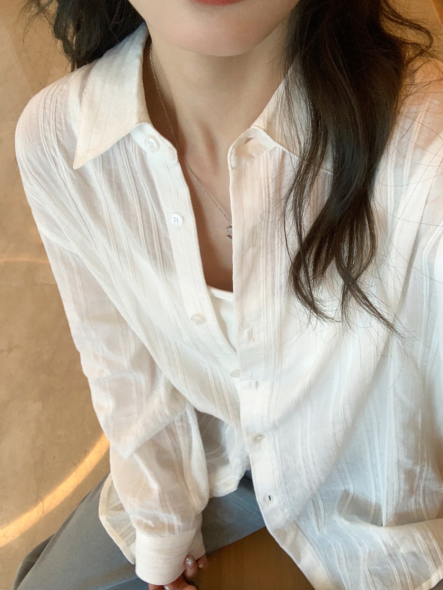 日常にも旅行にも活躍する、涼しげで女性らしいシャツです。